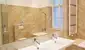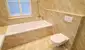 + Badezimmer mit Badewanne, Dusche, Doppelwaschtisch, Sprossenheizkörper und WC