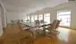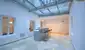 Durch eine Glasdecke über den Innenhof ist der Empfangsbereich besonders hell und repräsentativ. Die Fläche verfügt über zwei getrennte WCs, eine mögliche Teeküche sowie einen Serverraum. Derzeit dient die Teeküche als Abstellraum. Im Eingangsbereich ist ein modernes Pult mit Kühlschrank mit Gefrierbox, Geschirrspüler sowie Mikrowelle der Marke Bosch eingebaut.