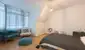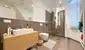 Badezimmer modern ausgestattet mit Dusche, Badewanne und WC