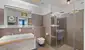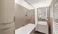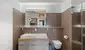 Vom zweiten Schlafzimmer, dem Masterbedroom ist noch ein Badezimmer mit bodenebener Dusche, WC und Doppelwaschtisch erreichbar. Von diesem Badezimmer erreicht man auch einen kleinen Hauswirtschaftsraum der Platz für Waschmaschine und Trockner bietet.