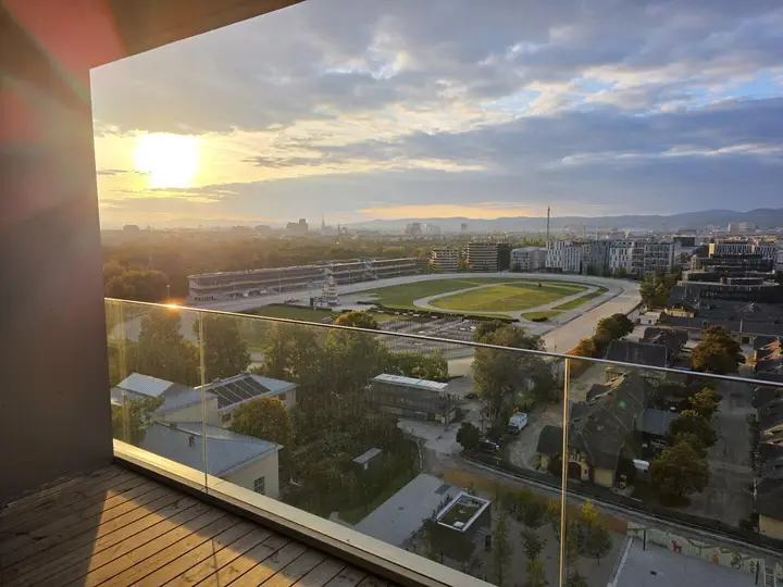 Fussbodenheizung und Deckenkühlung sind vorhanden und werden mittels Smart-Home App gesteuert. Anschluss für eigene Waschmaschine ist vorhanden. Die Fenster haben Verdunkelungsmöglichkeiten im 4-fach Verglasten-Fensterglas. Motorradabstellplätze können optional für 70€ in der hauseigenen Tiefgarage angemietet werden. PKW Abstellplatz kann optional für EUR 200,- in der hauseigenen Tiefgarage angemietet werden oder in der Stadion Center Garage für ca. EUR 90 monatlich.