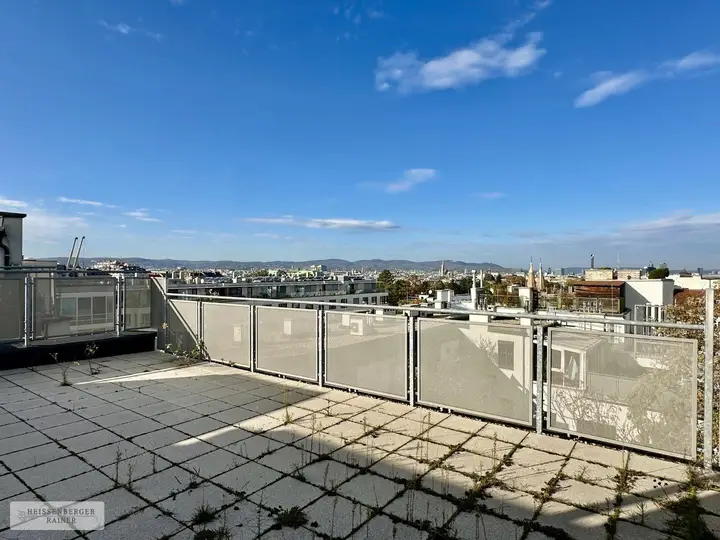 Das Büro ist flexibel gestaltet und bietet wunderbare Ausblicke und viel Licht. Highlight des Büros ist die beeindruckend große (mehr als 50m²!) Dachterrasse mit einzigartigem Panoramablick über Wien bis hin zum Kahlenberg!