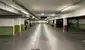 Die Garage liegt im Untergeschoß eines 1974 errichteten Mehrfamilienhauses mit glatter Fassade und Personenaufzug.