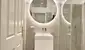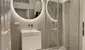 Weiters erreichen Sie das stilvolle Badezimmer, mit Walk-In Dusche, einem modernen Waschtisch mit passendem Unterschrank sowie hochwertigen Markenarmaturen und einem praktischen Handtuchtrockner ausgestattet ist. Großformatige Feinsteinzeugfliesen und eine geschmackvolle Beleuchtung verleihen dem Raum eine edle, elegante Atmosphäre.