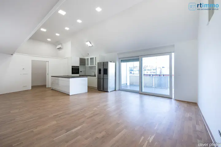 Diese beeindruckende Dachgeschosswohnung in einem stilvollen Gründerzeithaus aus 1884 vereint historischen Charme mit modernem Wohnkomfort. Der Dachausbau wurde 2017 durchgeführt, wodurch die Wohnung fast in neuwertigem Zustand ist. Die nordwestliche Ausrichtung sorgt für eine helle, angenehme Wohnatmosphäre, während die Terrasse auf Wohnebene einen schönen Weitblick bietet.