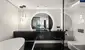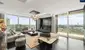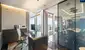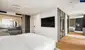 Die Glastrennwände der Wohnung bestehen aus schaltbaren Smartgläsern, die im ausgeschalteten Zustand durchsichtig sind und sich bei Knopfdruck in ein undurchsichtiges Milchglas verwandeln.
