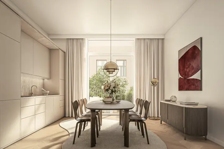 Die Ausstattung der Wohnung ist bis ins Detail durchdacht und auf höchstem Niveau ausgeführt: elegante Terrazzoplatten, edle Flügeltüren und kunstvolle Jugendstilelemente verleihen den Räumen eine einzigartige Note, während modernste Haustechnik höchsten Wohnkomfort garantiert. Die sorgfältige Materialauswahl kombiniert Wiener Stil und modernen Luxus harmonisch.