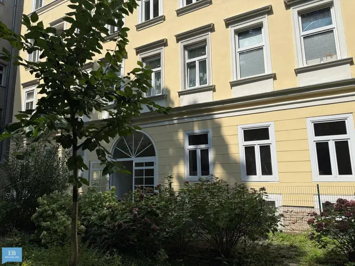 Diese 3-Zimmer-Altbauwohnung-Wohnung befindet sich im hinteren Teil eines charmanten Vier-Kant-Gründerzeithauses im Erdgeschoss. Ausgestattet mit zwei Schlafzimmern, Doppelflügeltür und durchgehend schönem Parkettboden.