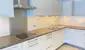 • Wohnraum mit offener Küche, L-förmige Einbauküche mit Geräten und viel Stauraum