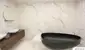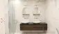 Die exklusiven Badezimmer mit Badewannenanlage, Dusch- und Waschbeckenanlage sowie ovalen Spiegeln mit Facettenschliff, Beleuchtung und Design-Handtuchtrockner wurden verfliest mit Großformatplatten.