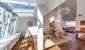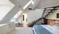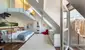 Die doppelte Raumhöhe trägt viel zum Flair dieser Wohnung bei, teilweise werden die hohen Räume auch besonders cool genutzt: Im Wohnbereich können Sie eine riesige Leinwand aus der Wand klappen und mit einem Beamer im Kinoformat Filme ansehen, im Schlafzimmer dient eine eingebaute Galerie als begehbare Garderobe