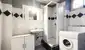 Das Badezimmer mit Dusche sowie die separate Toilette liegen links vom Eingangsbereich. Über dem Bad befindet sich ein kleiner Stauraum.