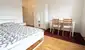 28m², Einbauküche mit Kühlschrank, E-Herd und Dunstabzugshaube, Zimmer mit Bett und Kleiderschrank, Tisch und Sesseln, Bad mit Dusche und WC, Waschmaschine, WLAN.