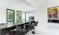 Besonders beeindruckend sind die Sitzecken mit faszinierendem Panoramablick über die Dächer Wiens, die den Puls der Stadt spürbar machen. Ergänzt wird dieser Bereich durch einen kleinen Arbeitsbereich, der sich harmonisch in das offene Raumkonzept einfügt.
