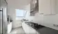 Ostseitig befinden sich die Küche mit Fenster, ein praktisches Homeoffice sowie das Badezimmer.
