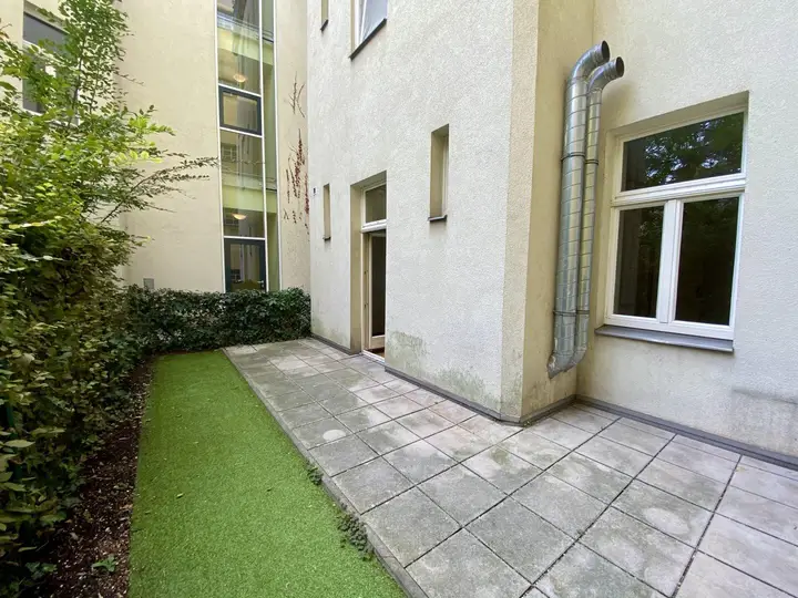 Großzügige 2-Zimmer-Wohnung mit Parkettboden, 57m², 1 Zimmer hofseitig und 1 Zimmer straßenseitig, getrennt begehbar, Einbauküche mit Kühlschrank, E-Herd und Dunstabzugshaube, Bad mit Wanne, WC separat, Terrasse, Vorzimmer und Küche mit Parkettboden, Fernwärmezentralheizung, Infrarotheizung im Vorraum und WC, Lift.