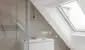 Badezimmer mit Dusche, Waschtisch und Unterschrank, Waschmaschinenanschluss