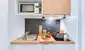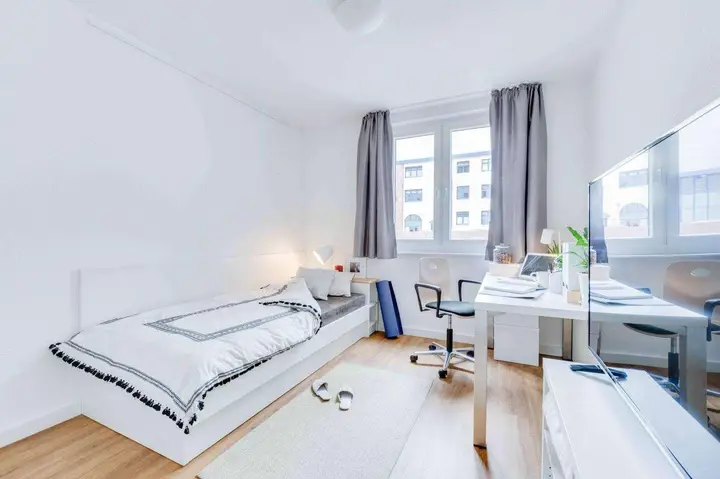 Das moderne Apartment in neuwertigem Zustand verfügt über ein eigenes Badezimmer mit Dusche und eine integrierte Kitchenette mit Kühlschrank, Cerankochfeld, Mikrowelle und Wasserkocher. Die funktionale Einrichtung umfasst ausreichend Stauraum und einen Arbeitsplatz. Zur Ausstattung gehören außerdem SAT-Anschluss, Highspeed-WLAN und eine Eigenständige Zentralheizung. Zusätzlich steht ein Kellerabteil zur Verfügung.