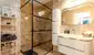 From the living room, you reach the hallway that leads to the two bedrooms and the bathroom. The bathroom has been beautifully renovated.
