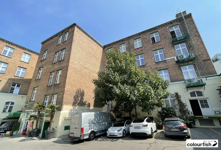 In die Vermarktung gelangt eine ca. 200 m² große Bürofläche in sehr guter Lage des 10. Wiener Gemeindebezirks in einem historischen Backsteingebäude mit hochwertiger Ausstattung und Loftcharakter. Das Büro liegt im 3. Obergeschoß eines Büro- und Geschäftshauses und verfügt über einen großen offenen Arbeitsbereich mit einem Archiv, dahinter ein Besprechungszimmer mit Klimaanlage und Blick auf den Innenhofgarten. Vom Besprechungszimmer ist direkt ein kleiner Balkon zu begehen. Abgetrennt durch Glaswände befindet sich ein Arbeitsbereich mit derzeit vier großen Arbeitstischen. Ebenso verfügt die Einheit über separate WC-Einheiten und eine kleine Teeküche im Eingangsbereich. Die Einrichtung vom Vormieter kann übernommen werden. Der Besprechungsraum ist klimatisiert, die bestehende Klimaanlage in den übrigen Räume kann vom Mieter auf eigene Kosten wieder in Betrieb genommen werden.