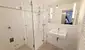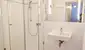 + Badezimmer mit Dusche, Waschtisch, Waschmaschinenanschluss und Sprossenheizkörper