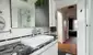 Zurück auf der unteren Hauptwohnebene befinden sich 2 Zimmer, die über die im Innenhof gelegene Loggia im Freien verbunden sind. Aktuell ist ein Zimmer offen gestaltet, eine Abtrennung ist möglich. Das Master Bedroom verfügt über einen vom Tischler gefertigten Schrankraum. Daran anliegend befinden sich ein kleiner Flur der den Zugang zum WC, dem Badezimmer, sowie dem Abstellraum unterhalb der Stiege zur Galerie bildet.