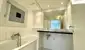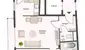 Der Wohnbereich führt weiter in das ruhige Schlafzimmer, das mit einem Badezimmer en suite ausgestattet ist. Hier erwartet Sie eine Wanne, ein Waschtisch und ein angenehmes Raumgefühl. Direkt anschließend befindet sich eine praktische Schranknische – ein kompakter Ankleidebereich, der sich ideal für Regalsysteme oder einen maßgeschneiderten Einbauschrank eignet.