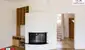Schon beim Eintreten öffnet sich der großzügige Wohnbereich mit seinen bodentiefen, dreifach verglasten Fenstern, die das Tageslicht hereinfluten lassen und den Blick in den Garten freigeben. Der Kamin mit seiner hellgrauen Natursteinverkleidung bildet den ruhigen Mittelpunkt er spendet Wärme, Atmosphäre und einen Hauch zeitloser Behaglichkeit. Der neu verlegte Parkettboden schimmert in einem warmen Honigton und bringt eine angenehme Ruhe in die klaren Linien des Raumes.