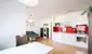 Herzstück der Wohnung ist der großzügige Wohn-, Ess- und Küchenbereich mit moderner Einbauküche. Diese ist ausgestattet mit Cerankochfeld, Backofen, Spülmaschine, Mikrowelle, Apothekerschrank sowie einer Dunstabzugshaube mit Abluft nach außen. Elektrisch bedienbare Velux-Fenster und eine große Fensterfront sorgen für ein lichtdurchflutetes Ambiente. Vom Wohnbereich aus gelangen Sie auf den großzügigen Balkon mit herrlichem Weitblick und ruhiger Ausrichtung, perfekt zum Entspannen.