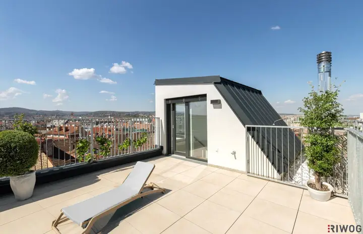 Ein bestehendes Gebäude wurde aufwendig modernisert und um 3 neue Etagen erweitert. Die Wohnungen befinden sich im NEUBAU: 4.Stock, 5. Stock, 1.Dachgeschoss mit Dachterrassen.