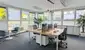 Die Büroräume sind südwestseitig ausgerichtet und sehr hell. Gegenüber dem Büro befinden sich das Kongressbad und der Kongresspark, sodass ein schöner Blick ins Grüne gewährleistet ist. Neben den drei Büroräumen gibt es getrennte Sanitäranlagen und eine Raum für eine Teeküche (Anschlüsse vorbereitet). Die Bürofläche wird unmöbliert vermietet, die Beispielfotos sind mittels KI generiert.