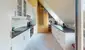 Vorraum, Abstellraum, Badezimmer (Wanne, WC, Bidet), separate Küche mit Terrassenzugang, großzügiger Wohn-/Essbereich mit Gaubenfenstern.
