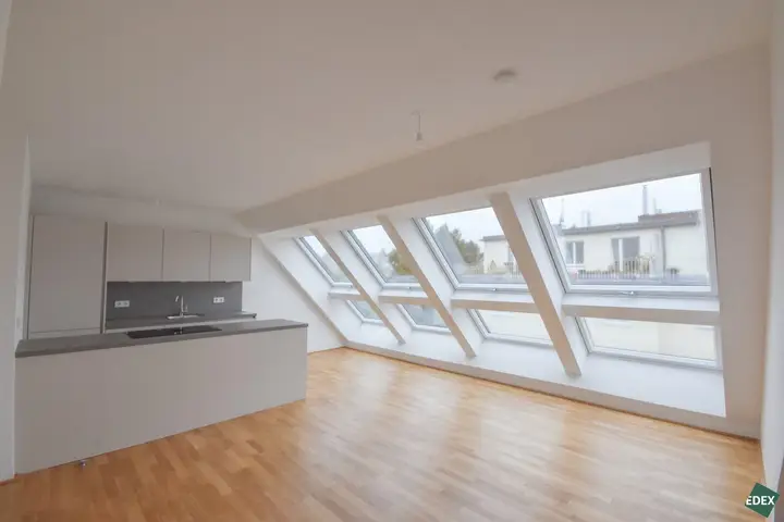 Die Wohnungen mit einer Größe von ca. 55 m² bis 85 m² verfügen über drei Zimmer und bieten großzügige Grundrisse mit durchdachter Raumaufteilung. Beinahe jede Einheit verfügt über eine Freifläche in Form von Balkon oder Terrasse – für mehr Licht, Luft und Lebensqualität. Die intelligente Raumnutzung vermittelt selbst bei kleineren Flächen Großzügigkeit. Der zentrale Wohnbereich mit offener Küche (ausgestattet mit modernen SIEMENS-Geräten) schafft einen harmonischen Mittelpunkt für entspanntes Wohnen.