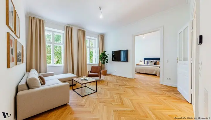 In einem prachtvollen Stilaltbau mit Stuckfassade, mitten in einer der begehrtesten Wohngegenden Wiens, erwartet Sie diese außergewöhnlich sanierte Altbauwohnung mit rund 84 m² Wohnfläche. Schon das Entrée mit charmant lackierter Altbautür und das klassisch wienerische Stiegenhaus versprechen ein besonderes Wohngefühl, das sich im Inneren eindrucksvoll fortsetzt: hohe Räume, originale Kastenfenster, Fischgrätparkett, Stuckdecken und liebevoll umgesetzte Details wie vergoldete Armaturen oder eine stilvolle Schalterserie im Retrodesign (Berker 1930). Die Wohnung wurde im Zuge einer aufwendigen Sanierung vollständig erneuert – von der Elektrik über die strombetriebene Fußbodenheizung bis zur exklusiven Ausstattung in Küche und Bad. Dabei wurde großer Wert darauf gelegt, den historischen Charakter zu bewahren und mit modernen Wohnstandards zu verbinden. Alle Räume sind hofseitig ausgerichtet und damit absolut ruhig. Das Herzstück der Wohnung bilden zwei große Zimmer mit herrlichem Grünblick in den Innenhof. Ein Zuhause für Liebhaber*innen des klassischen Wiener Altbaus, mit modernster Technik und in einer der exklusivsten Lagen Wiens.