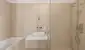 • großformatiges Feinsteinzeug (600 x 600 mm) in den Nassräumen