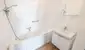 Das Badezimmer ist modern gestaltet und mit zeitlosen Sanitärobjekten ausgestattet. Es verfügt über eine Badewanne sowie ein Waschbecken und bietet durch die geschickte Raumaufteilung viel Bewegungsfreiheit. Ein separates WC mit Handwaschbecken steht ebenfalls zur Verfügung.