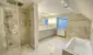 anteroom, master bedroom (ca. 26m²) with walk-in cloakroom (ca. 15m²) and en-suite bathroom with tub and walk-in shower, toilet, 2 additional bed-/ rooms (ca. 18m² & 21m²) and a second bathroom with tub, shower and toilet;