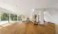Das Wohngeschoss besteht aus einem weitläufigen Wohn-Essbereich mit offener Küche und vorgelagerter, großzügiger Süd-Terrasse mit traumhaftem Blick über Wien, einer Diele mit Gäste-Toilette und Wirtschaftsraum. Auf der gartenseitigen N/W-Terrasse befindet sich auch der Aufgang zum Dachgarten.