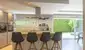 Bereits beim Betreten empfängt ein praktischer Vorraum mit integrierter Garderobe. Herzstück der Wohnung ist der rund 98 m² große, südseitige Wohn-, Ess- und Küchenbereich: Offen gestaltet und wunderbar belichtet, verbindet er modernes Wohnen mit gemütlicher Eleganz. Ein Kamin sorgt für behagliche Stimmung, während der Essplatz mit direktem Zugang zum wunderschönen, uneinsichtigen Garten ideale Voraussetzungen für entspannte Stunden im Grünen bietet. Die stilvolle Küche mit Bar fügt sich harmonisch in das offene Raumkonzept ein.