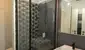 Bad: 1 mit hochwertigen Keramiken von Villeroy & Boch, Armaturen von Hansgrohe (black-line), Handtuchhalter und Spiegel