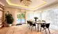 Im Zentrum befindet sich ein beeindruckendes Wohnzimmer mit Kamin und Ausgang auf die Terrasse, das fließend in den Essbereich und die Küche übergeht.
