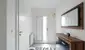 The wooden staircase takes you upstairs to the bedrooms, which have a view to the surrounding greenery and beyond. On this floor, there are three large bedrooms, a walk in closet, and a bathroom equipped with a corner bathtub, shower cubicle, hand washbasin and WC.