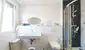 The wooden staircase takes you upstairs to the bedrooms, which have a view to the surrounding greenery and beyond. On this floor, there are three large bedrooms, one of which has a walk in cupboard, and a bathroom equipped with a corner bathtub, shower cubicle, hand washbasin and WC. All the bedroom windows are equipped with exterior blinds for maximum comfort.