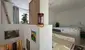 Über die Treppe gelangt man in die zweite Ebene, auf der sich das Schlafzimmer, sowie ein begehbarer Schrank befinden.