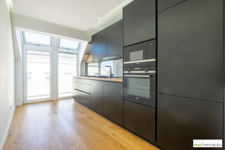 Diese traumhafte, lichtdurchflutete und verspielte Dachgeschoss - Wohnung verzaubert jeden Augenblick in unvergessliche Momente. Sei es den Sonnenuntergang nach einem langen und gestressten Arbeitstag auf der Dachterrasse zu genießen und den Abend mit einem Glas Wein ausklingen zu lassen oder die tollsten Geschichten mit Freunden und Familie im Wohnzimmer zu erleben!