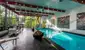 Direkt an das Haupthaus angeschlossen befindet sich eine große Schwimmhalle mit einem 60 m² großen Pool, ein Dampfbad, ein Fitnessbereich und ein Weinkeller. Im Garten ist zusätzlich eine ehemalige Kegelbahn situiert. Das Gästehaus bietet Platz für eine weitere Familie und verfügt auf rund 140 m² über einen Salon, eine Küche, drei WCs und ein großes Badezimmer. Das Gärtnerhaus hat rund 80 m² und ist mit Dusche und WC ausgestattet, auch hier ist der Dachboden ausgebaut.