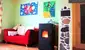 eines zentraler und gemütlicher Ofen mit sichtbarer Flamme. :)