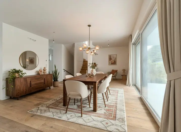 Mit viel Liebe zum Detail und einer durchdachten Planung werden diese Häuser zu einem Ort, an dem Sie sich rundum wohlfühlen werden. Der offene Wohn- und Essbereich, die großzügigen Fensterfronten, die Fußbodenheizung sowie die Balkone und Terrassen versprechen einen hohen Wohnkomfort.