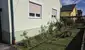 Der Keller bietet Stauraum und Technikräume. Der Garten ist über den Hintereingang zugänglich und umfasst eine Sitzbank, ein Nebengebäude mit Werkstatt und Grünfläche.