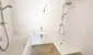 Das Bad mit Badewanne, Dusche und Waschmaschinenanschluss ist zeitlos weiß verfließt. Das große Vorzimmer und der Abstellraum bieten viel Stauraum. Ein separates Gäste-WC ist ebenfalls vorhanden.